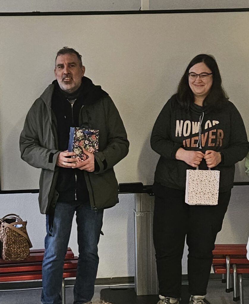 Wir haben auch weiter an unserer Präsentation für den Kinderrat gearbeitet. Außerdem haben wir Frau Schlüsener, Herrn Grosch vom KiJuB und seinen Praktikanten Jan eingeladen und ihnen kleine Geschenke gegeben, weil sie uns so toll geholfen haben. Wir machen nämlich anderen Menschen gerne eine Freude, wenn sie uns die Möglichkeit geben, an so tollen Aktionen teilzunehmen.