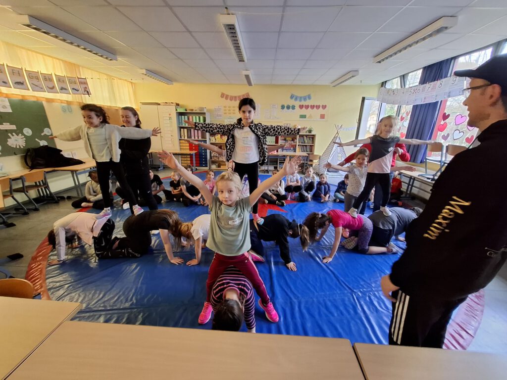 Gemeinsam mit Mitarbeiterinnen und Mitarbeitern unserer Schule sowie den Trainern des „Cirkus ohne Grenzen“ wurde in den Gruppen intensiv trainiert, gelacht und ausprobiert. Im Laufe der Woche wuchsen die Kinder immer mehr zusammen, entwickelten Mut, Ausdauer und Teamgeist – und entdeckten dabei ganz neue Fähigkeiten.